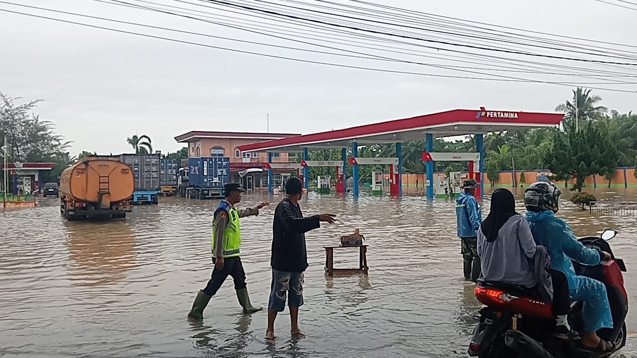 Polsek Indrapura Pantau Banjir di Jalinsum Tanjung Seri Akibat Curah Hujan Ekstrem