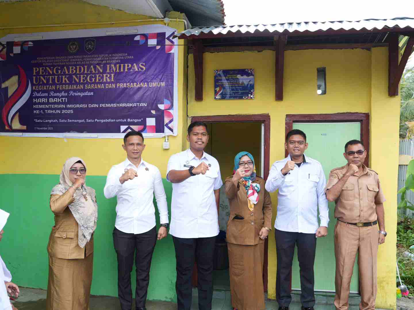 Pangkalan Brandan — Rumah Tahanan Negara Kelas IIB Pangkalan Brandan meresmikan perbaikan sarana dan prasarana umum di SD Negeri 053996 Pelawi, Senin, 24 November 2025. Kegiatan ini digelar dalam rangka memperingati Hari Bakti KEMENIMIPAS ke-1 tahun 2025, dengan tema “Satu Langkah, Satu Semangat, Satu Pengabdian untuk Bangsa.”