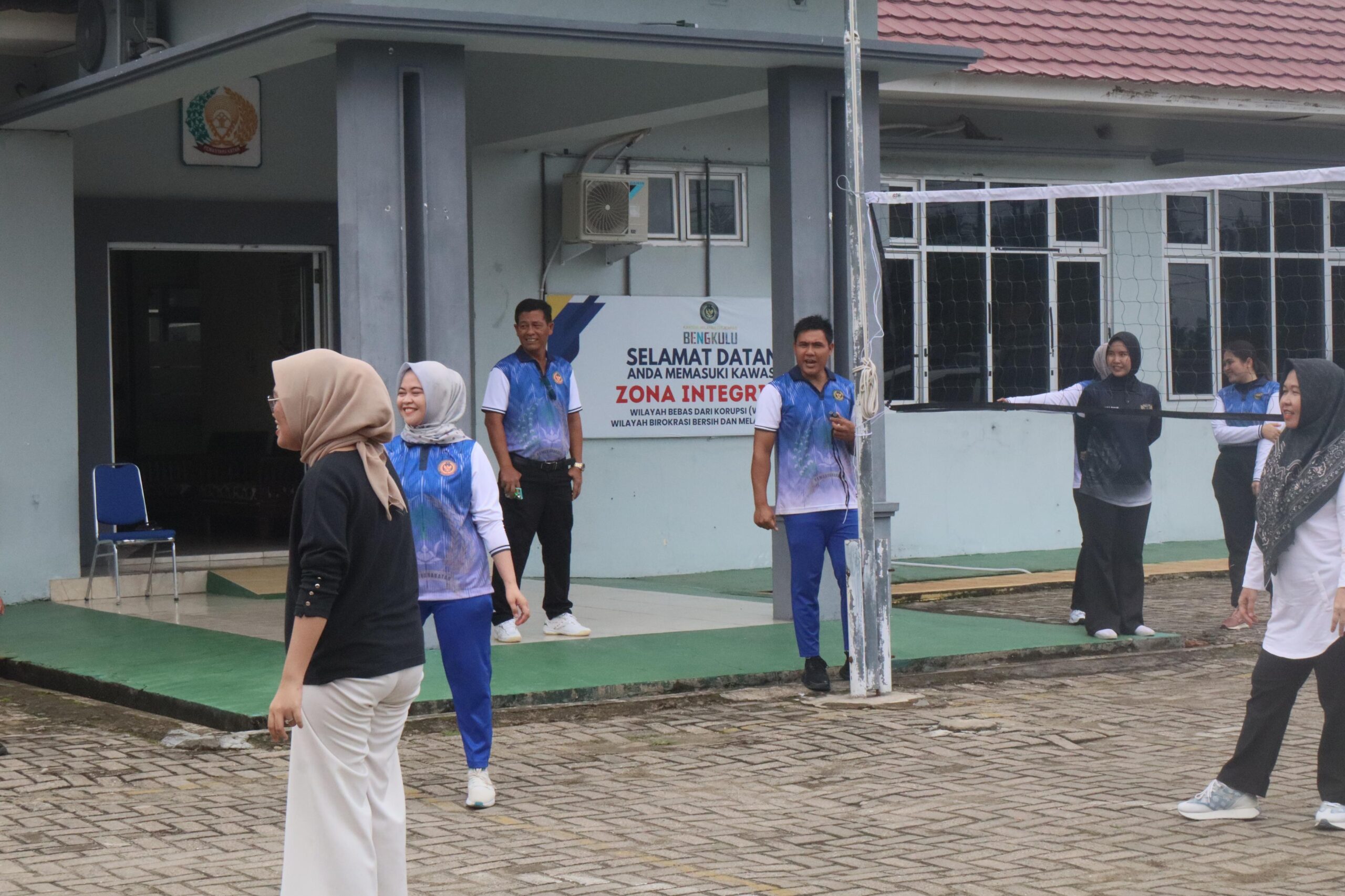 Kegiatan olahraga rutin ini berlangsung di halaman kantor Kanwil Ditjenpas Bengkulu dengan suasana penuh semangat dan kebersamaan. Seluruh peserta tampak antusias mengikuti pertandingan voli yang digelar secara santai namun tetap menjunjung tinggi sportivitas.