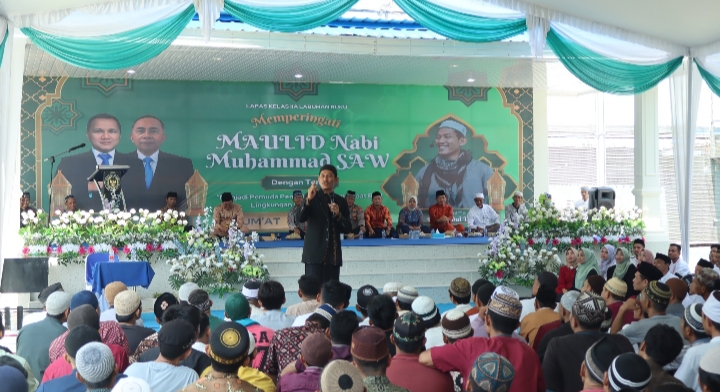 Batu Bara – Lapas Kelas IIA Labuhan Ruku menggelar peringatan Maulid Nabi Muhammad SAW, di lapangan utama lapas, Jumat (26/9/2025).
