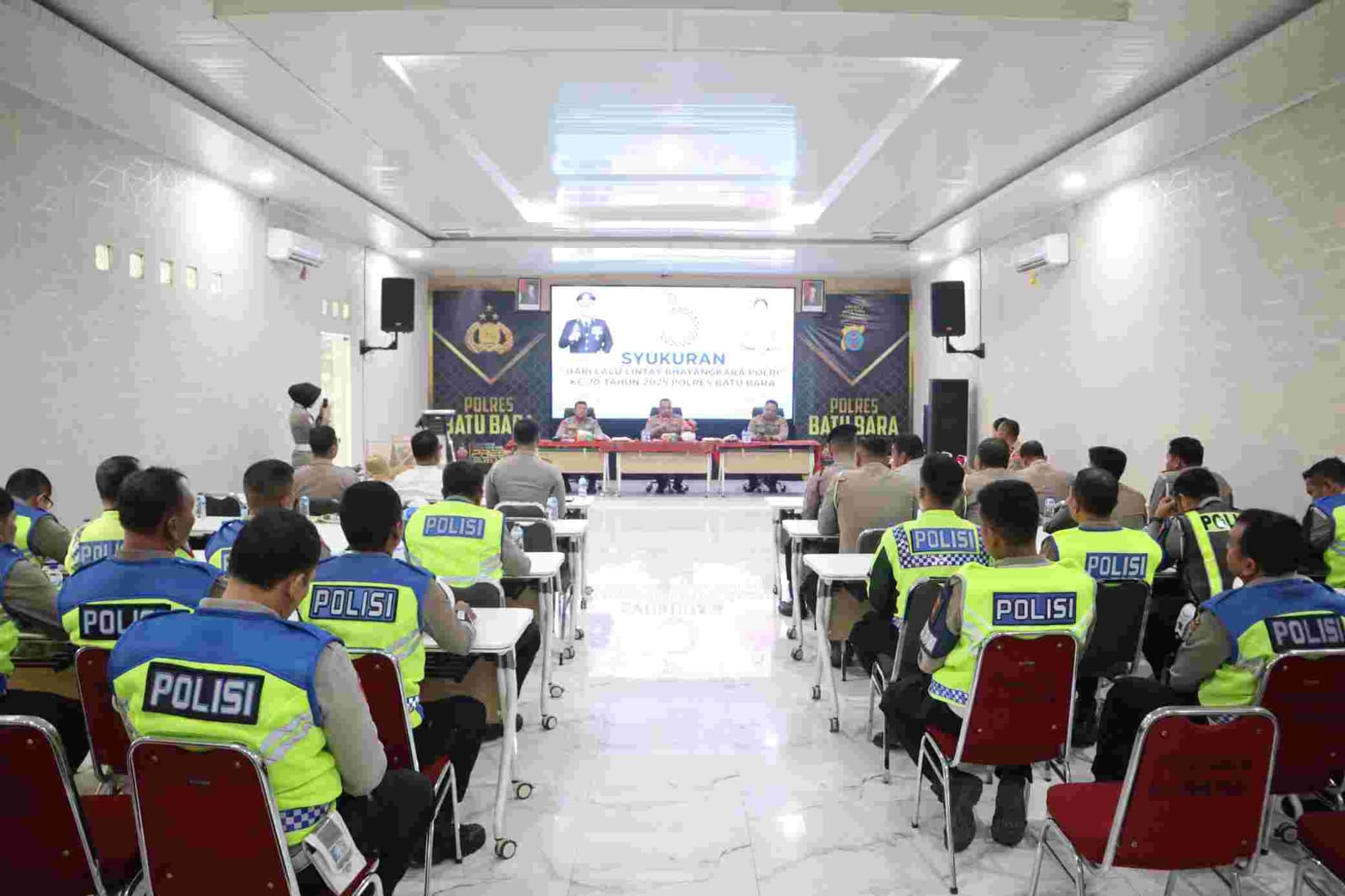 Batu Bara, 24 September 2025 – Polres Batu Bara menggelar acara syukuran meriah dalam rangka memperingati Hari Bhayangkara Lalu Lintas ke-70. Acara yang berlangsung di Aula Sarja Arya Racana pada Rabu, 24 September 2025, ini menjadi momentum penting untuk merefleksikan kinerja, memberikan apresiasi, dan memotivasi seluruh jajaran Satuan Lalu Lintas (Satlantas) Polres Batu Bara.