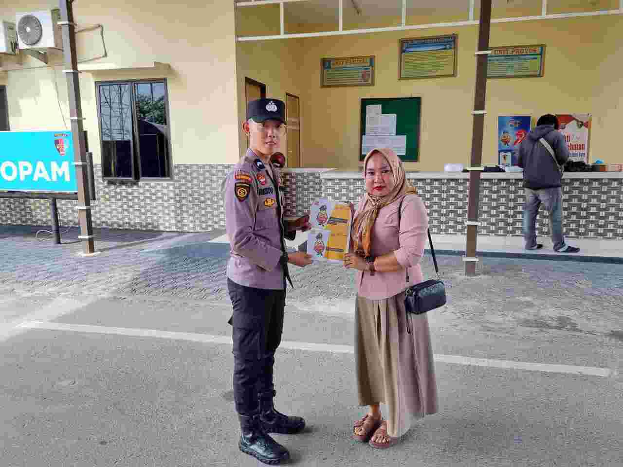Dalam kegiatan tersebut, Bripda Restu Tri Vansyah memberikan sosialisasi mengenai aplikasi Call Center 110 kepada masyarakat. Ia juga menyampaikan pesan agar masyarakat selalu waspada saat membawa barang-barang berharga.