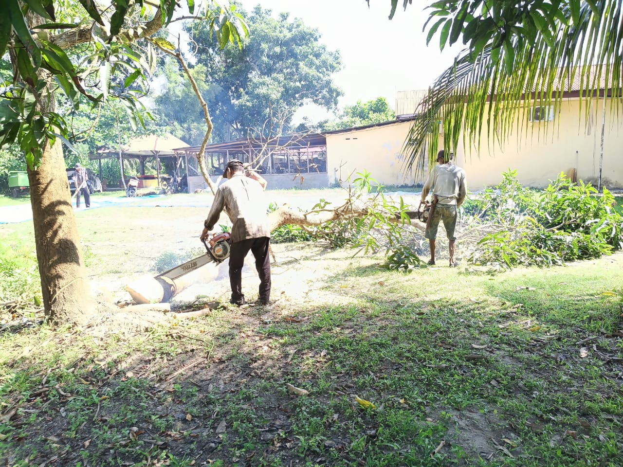 Kegiatan pembersihan dipimpin langsung oleh Kapolsek Indrapura AKP Reynold Silalahi, S.H, bersama dengan seluruh personel Polsek Indrapura. Mereka bahu-membahu menebang pohon dan membersihkan rumput di sekitar lokasi yang akan dibangun Dapur SPPG.