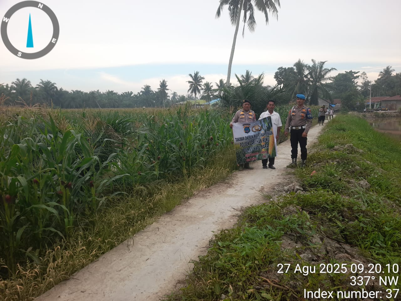 Batu Bara – Kanit Samapta Polsek Labuhan Ruku, Ipda Z F Purba, melaksanakan pengecekan ketahanan pangan Polri dengan meninjau lahan jagung yang ditanam di lahan milik Ando Sitinjak di Dusun VIII Desa Pematang Rambai, Kec. Nibung Hagus, Kab. Batu Bara. Kegiatan ini dilaksanakan pada Rabu, 27 Agustus 2025, pukul 09.30 WIB.