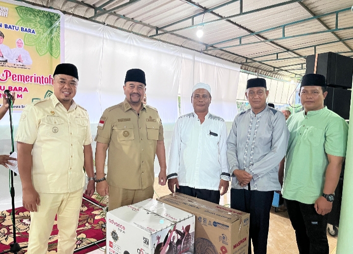 Pada kesempatan tersebut, Bupati Batu Bara menyerahkan bantuan kepada pengurus Masjid Al-Ashari berupa satu unit speaker aktif dan kipas angin guna mendukung kenyamanan dan kelancaran pelaksanaan ibadah.