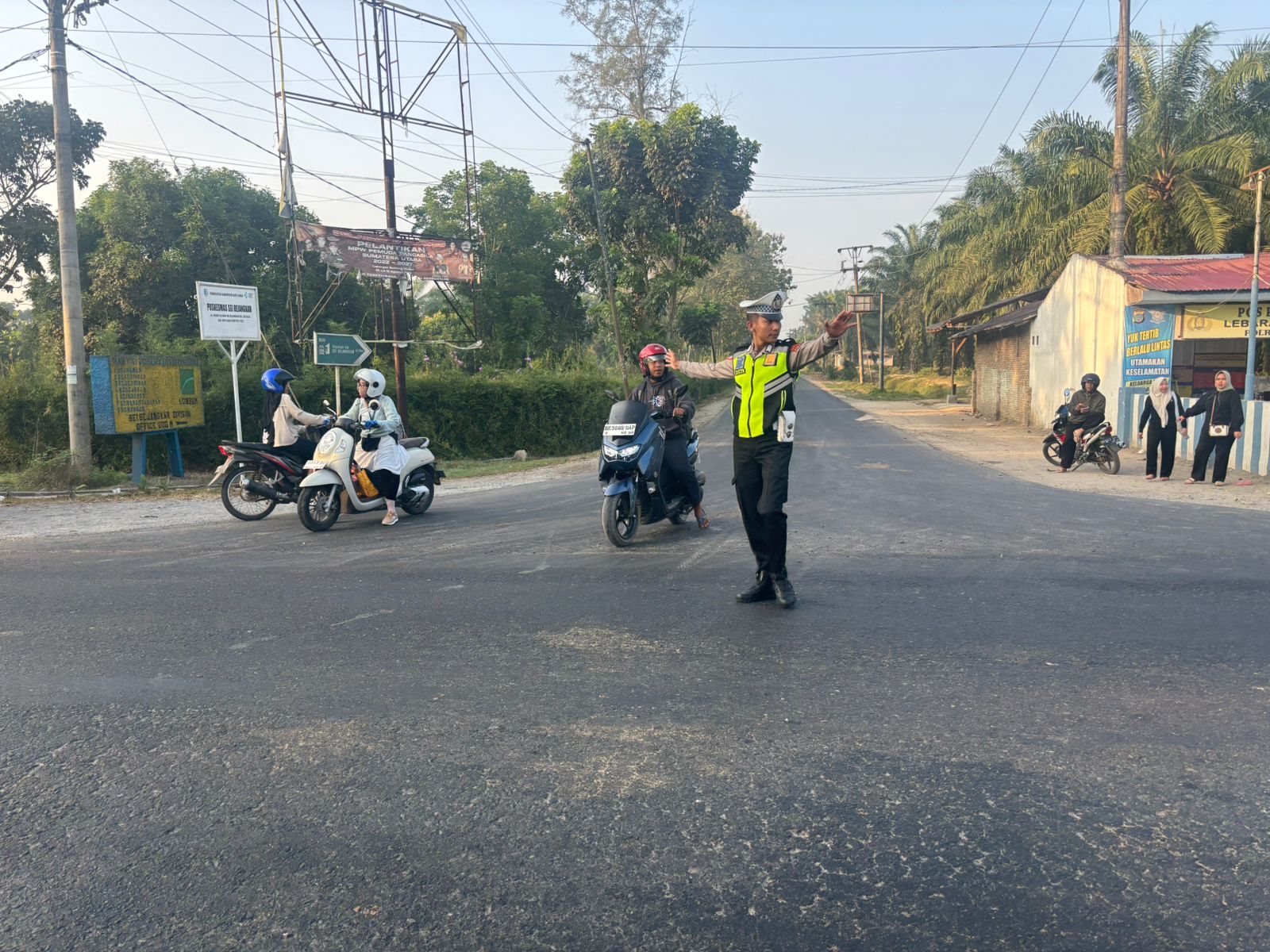 Pada hari Senin, 25 Agustus 2025, mulai pukul 06.45 WIB, personel Sat Lantas Polres Batu Bara terjun langsung ke jalan untuk melaksanakan pengaturan lalu lintas.