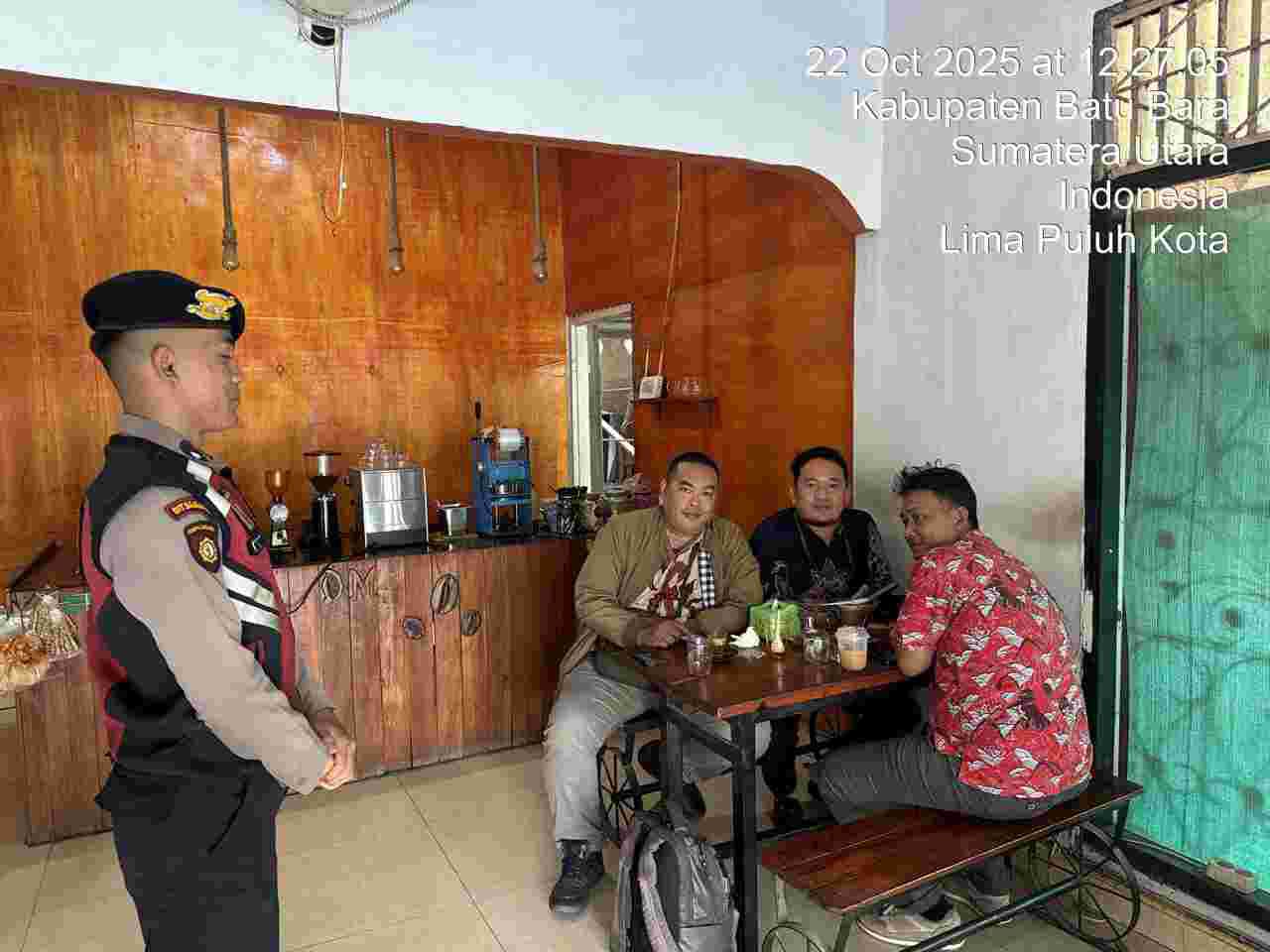 Lima Puluh, Sumatera Utara – Satuan Samapta (Sat Samapta) Polres Batu Bara terus menggencarkan kegiatan cooling system di wilayah hukumnya. Pada Rabu (22/10/2025), kegiatan ini dilaksanakan mulai pukul 12.20 WIB di Kedai Kopi Indra, Kecamatan Lima Puluh, Kabupaten Batu Bara.