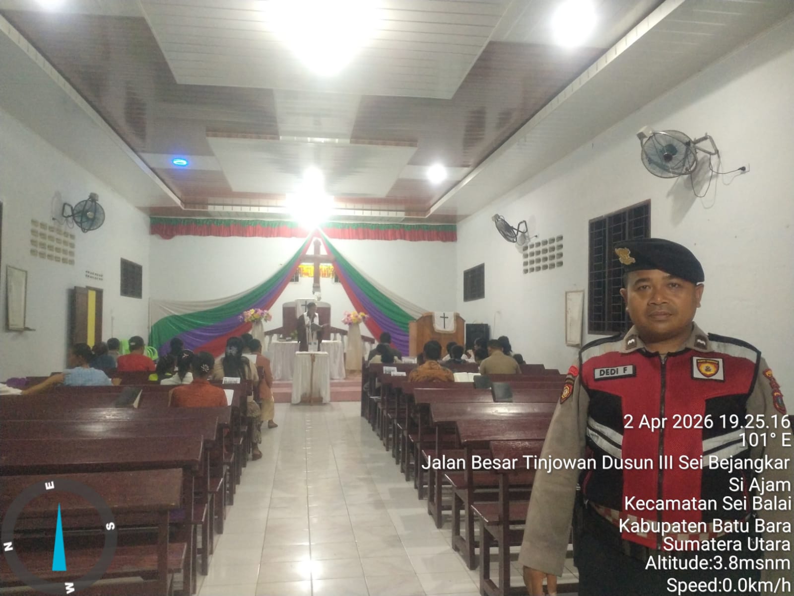 Pengamanan dipimpin oleh AIPDA B. Nababan, AIPDA Saul P. Manihuruk, dan AIPDA Dedi Firmansyah bersama personel lainnya. Petugas melakukan pengecekan di sembilan lokasi gereja yang tersebar di berbagai kecamatan, yaitu Kecamatan Air Putih, Sei Balai, Sei Suka, Datuk Tanah Datar, Medang Deras, dan Lima Puluh.